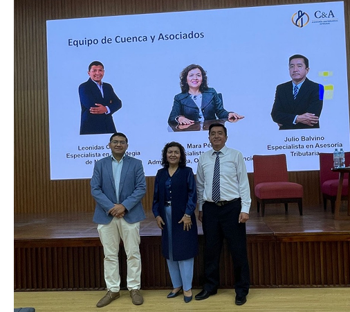 En el evento se presentaron los servicios de Cuenca y Asociados, resaltando la experiencia comprobada del equipo y su enfoque integral, que integra economía, tributación, gestión administrativa y consultoría de negocios.